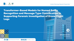 Drones continuously generate flight log data containing valuable information about flight states, sensor readings, and system events. These logs are critical forensic artifacts for investigating incidents such as crashes or operational anomalies. However, previous forensic studies seldom explore the semantic context embedded within the human-readable flight log messages. This paper presents a Transformer-based named entity recognition (NER) framework to automatically extract meaningful entities such as events and issues from drone flight logs. To enhance generalization and simplify downstream analysis, the six original entity types defined in the DroNER dataset were merged into two higher-level classes Event and NonEvent to represent operational and anomalous contexts, respectively. We fine-tuned three pre-trained language models: BERT, DistilBERT, and SqueezeBERT, on this adapted dataset curated for drone forensic analysis. Experimental results show that SqueezeBERT, with only 51M parameters, achieves an F1 score of 96.79%, comparable to BERT’s 98.00%. This study is the first to benchmark. These findings suggest that lightweight Transformer architectures are highly promising for edge-level forensic NLP applications, enabling real-time log-based investigation automation on resource limited forensic platforms.